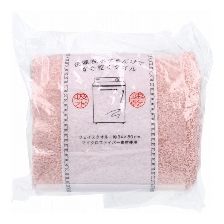 洗濯脱水するだけですぐ乾くタオル2 フェイスタオル 約34×80cm ライトピンク 1枚入 日用品【ポイント10倍】