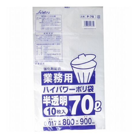 業務用ごみ袋 ハイパワーポリ袋 半透明 70L 0.017×800×900mm 10枚入