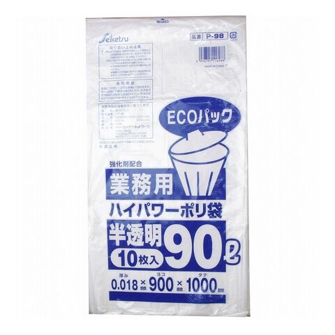 業務用ごみ袋 ハイパワーポリ袋 半透明 90L 0.017×900×1000mm 10枚入