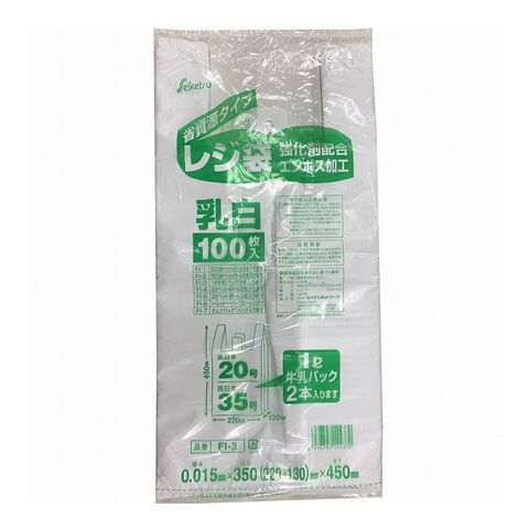 FI-3 レジ袋35号 乳白 0.015×350×450mm 100枚入