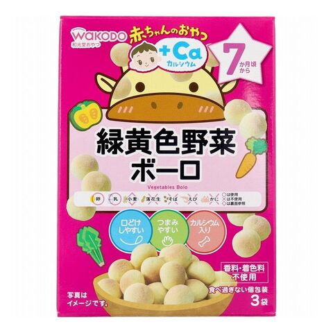 和光堂 赤ちゃんのおやつ+Ca 緑黄色野菜ボーロ 15g×3袋