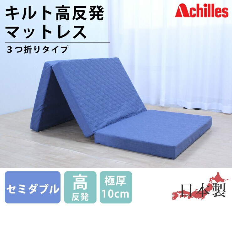 Achilles アキレス キルト高反発マットレス セミダブル AK-327SD 3つ折り 日本製 国産 コンパクト ウレタン プロファイル構造 体圧分散 腰痛 かため かたい 【送料無料】