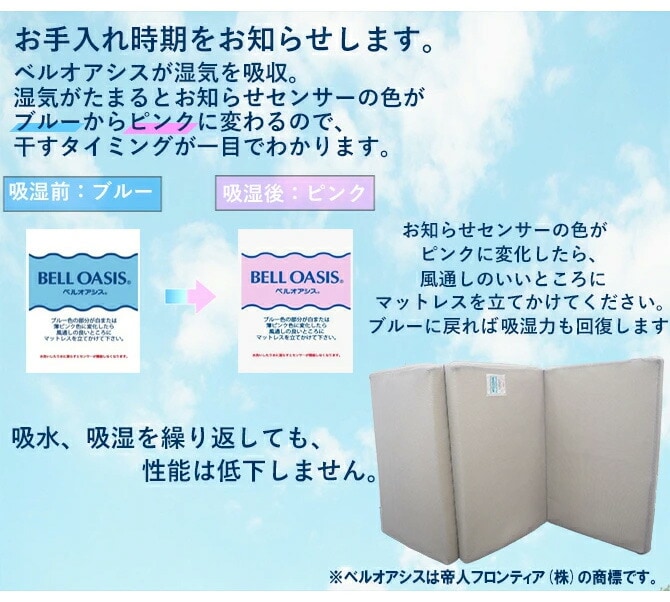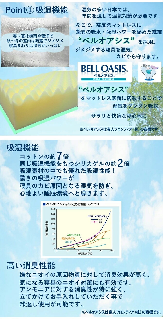 “ベルオアシス”をマットレス底面に搭載することで湿気をグングン吸収