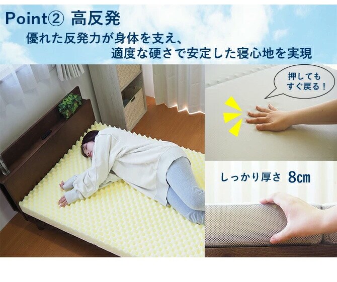 優れた反発力が身体を支え、安定した寝心地を実現