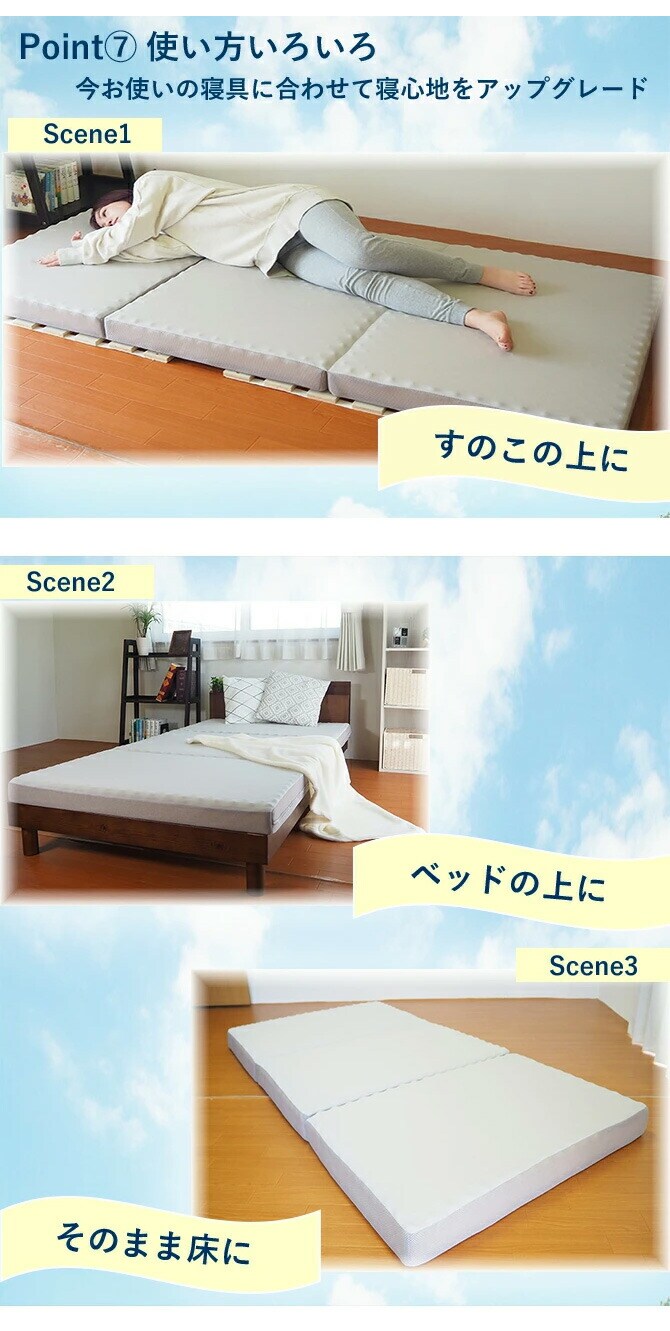 アキレス Achilles マットレス 調湿機能付き高反発三つ折りマットレス 日本製 高反発 3つ折り 厚さ10cm 体圧分散 通気 三つ折り ごろ寝 敷布団 折り畳み 高反発マットレス ベッドマットレス【送料無料】