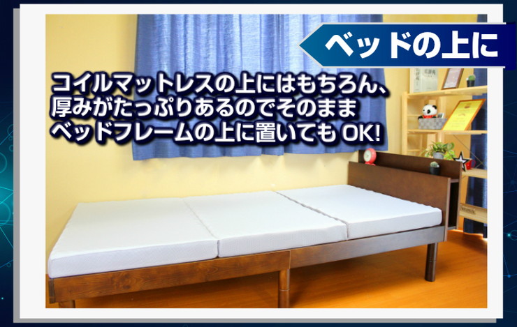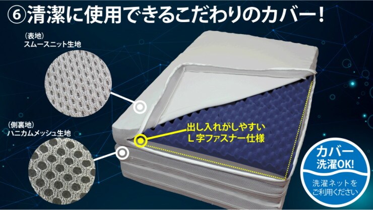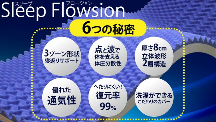 2層構造により、上層でふんわり柔らかいタッチを与え、下層でしっかりと支えているので、心地よい寝心地をあたえます。