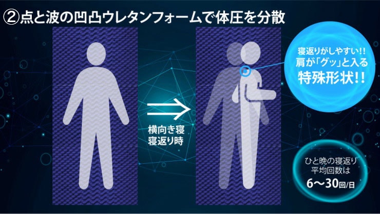 横のゾーンへ寝返りをした際、肩が入り、寝返りがしやすくなります。
