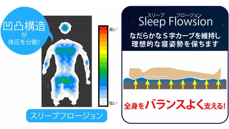 縦にゾーン加工プロファイルを施すことで、真ん中のゾーンでしっかり寝る姿勢を維持し、