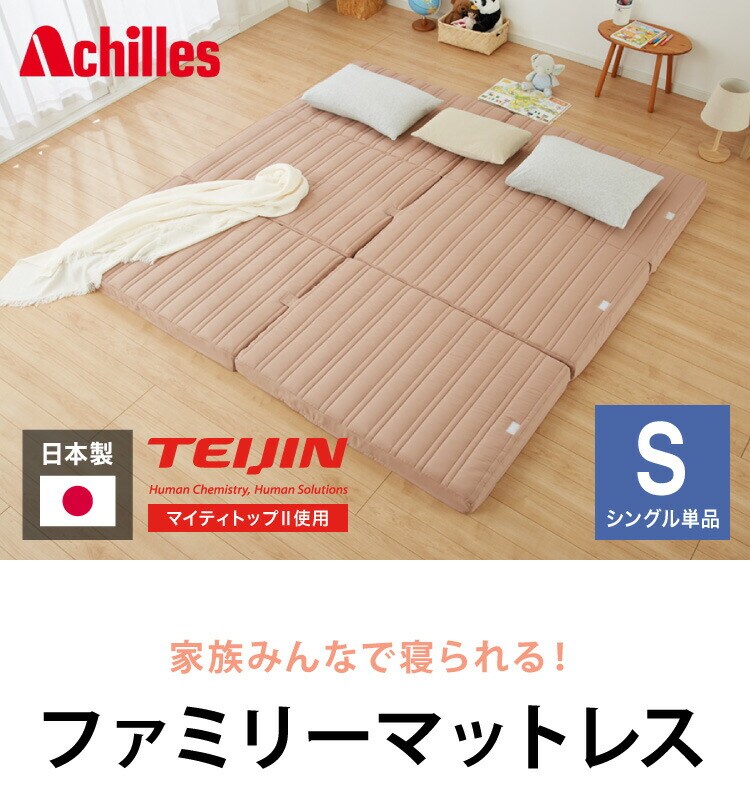 アキレス 日本製 帝人マイティトップ使用 三つ折り マットレス シングル 連結 滑り止め付き 吸湿 敷き布団 折りたたみ キルティング 国産 コンパクト 収納 厚さ8cm 高反発 体圧分散【送料無料】