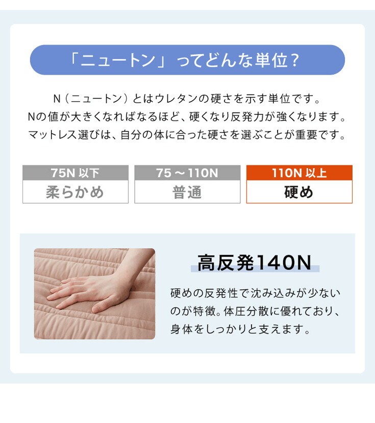 中材:ウレタンフォーム100%(硬さ-140N、密度-25D)