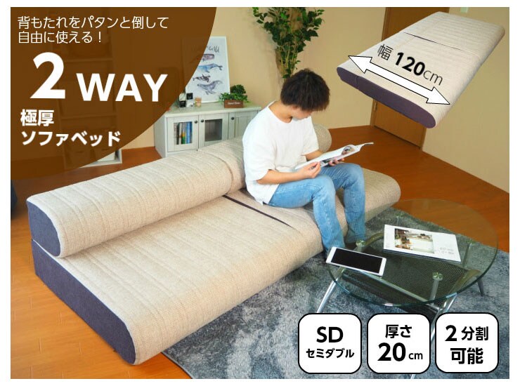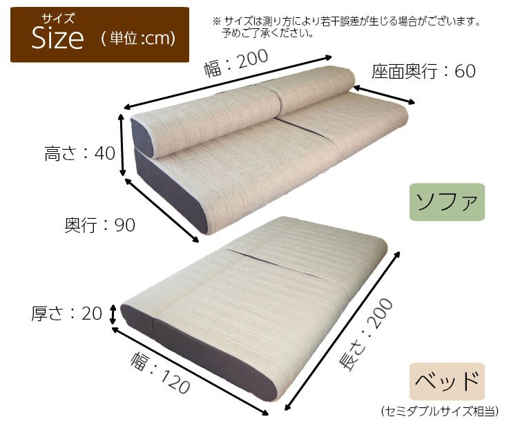 ソファ時:400×900×2000(mm)