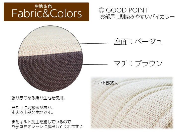 ポリエステル80%、綿15%、その他5%(表面キルト加工 ポリエステルわた100%)