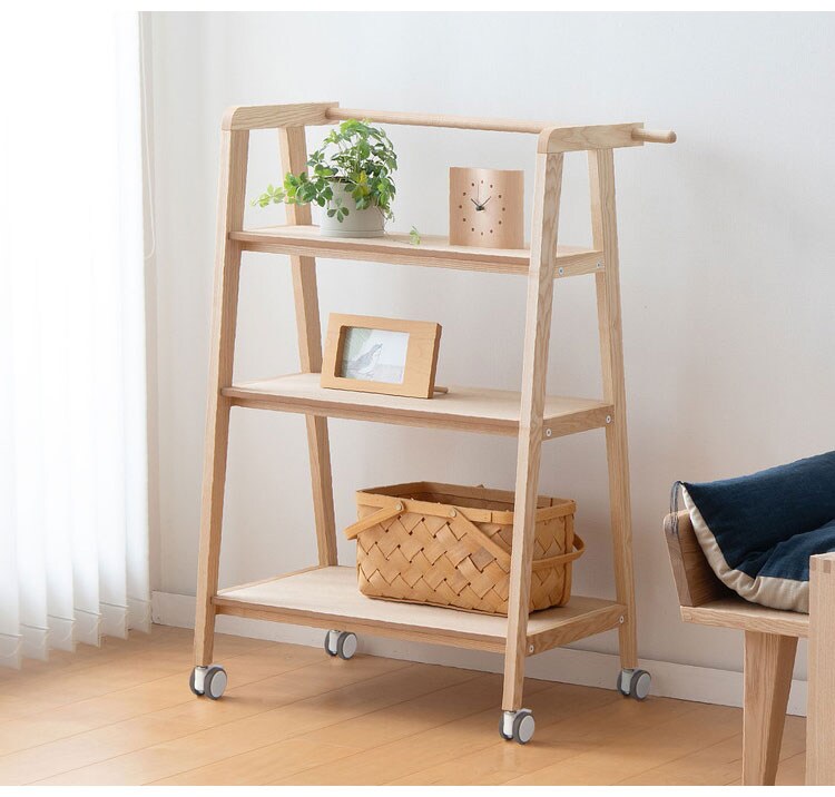【日本製 ワゴンシェルフ 北海道産 タモ材】 オイル仕上げ ワゴン シェルフ 木製 木目調 木目 無垢材 旭川家具キャスター付き キャスター 台所収納 キッチン収 納幅80.5cm 奥行39.5cm 高さ100cm【送料無料】