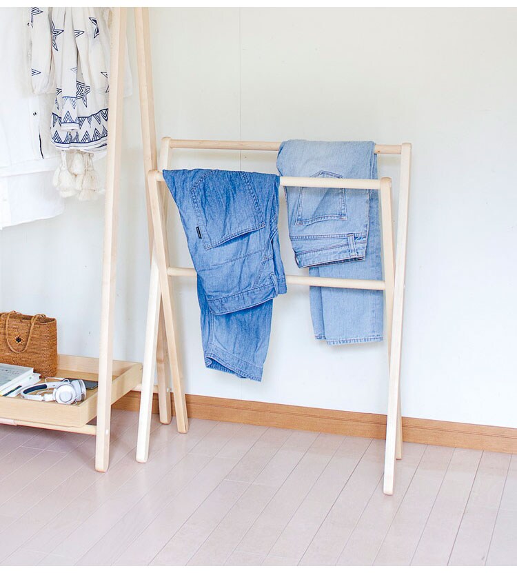 洋服やタオルをちょっと掛けて使えるスマートラック。脚をたたんだときは完全にフラットになり奥行きは3.5cmになるので、使わないときには狭い隙間に収納しておくことができます。