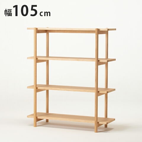 【日本製 リビングシェルフ 北海道産 タモ材】 シェルフ ラック ディスプレイラック オープンラック オープンシェルフ オイル仕上げ 木製 木目調 木目 無垢材 旭川家具 幅105cm 奥行37cm 高さ121cm【送料無料】