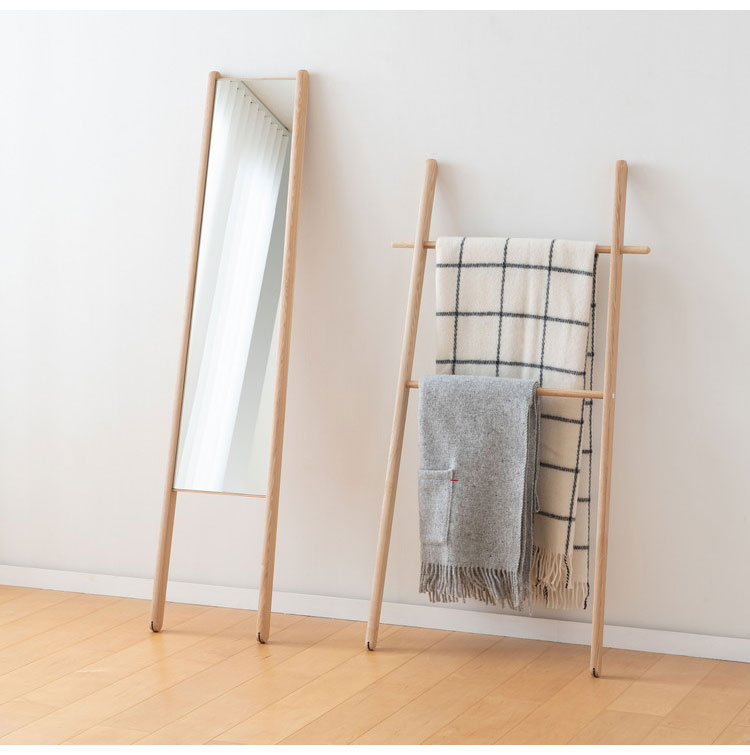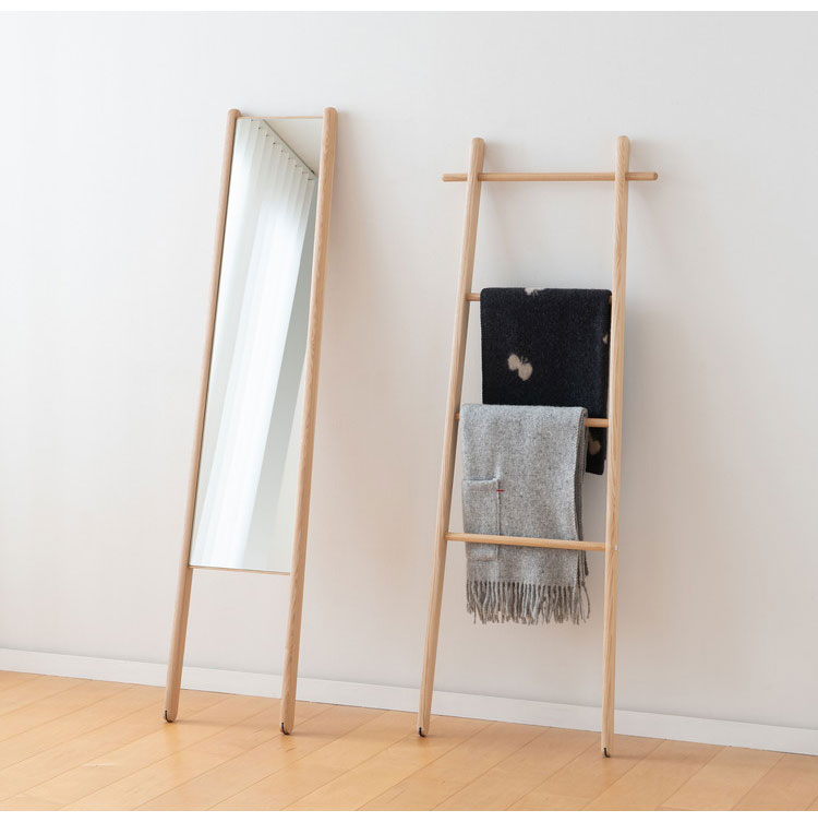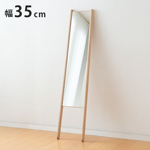 【日本製 キャリーミラー 北海道産 タモ材】 ミラー 全身鏡 鏡 姿見 壁掛け 全身 玄 リビング オイル仕上げ 木製 木目調 木目 無垢材 旭川家具 幅35.5cm 奥行4.5cm 高さ160.5cm【送料無料】