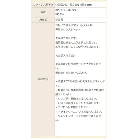 ファミリータイプマットレス 専用ボックスシーツ 4人用