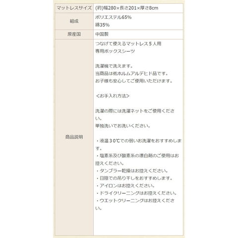 ファミリータイプマットレス 専用ボックスシーツ 5人用