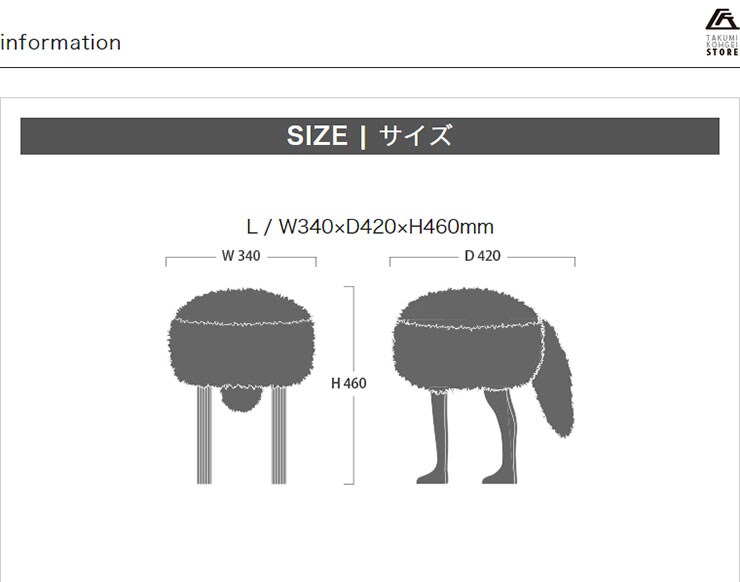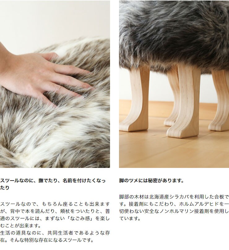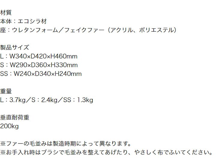 座面:ウレタンフォーム/フェイクファー(アクリル、ポリエステル)