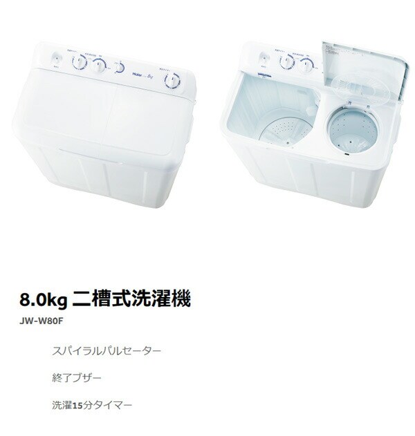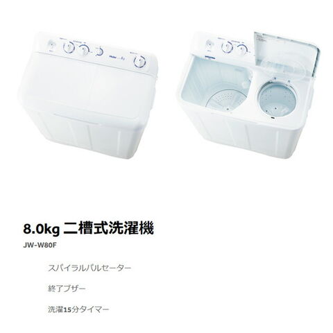 ハイアール 8.0kg 二層式洗濯機 JW-W80F-W 取付工事不可【送料無料】のレビュー