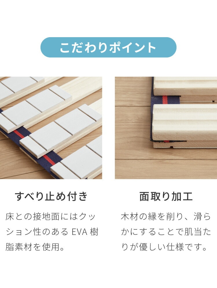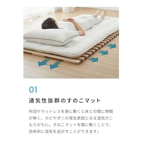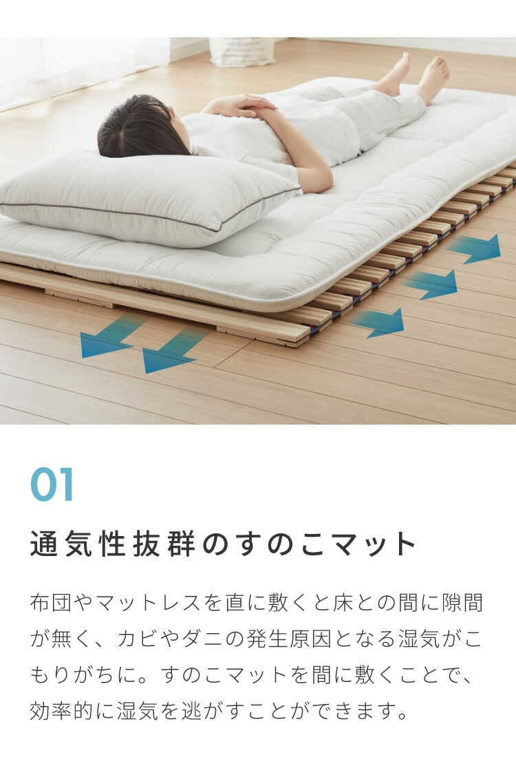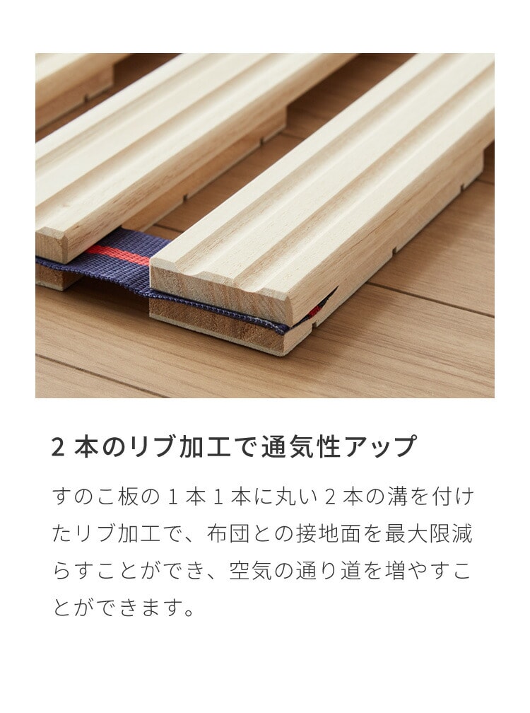 もちろん、一枚一枚の板に凸凹をつけるリブ加工なので、新鮮&爽やかな風を通すことでお布団をカビ・ダニから守り清潔に保ちます。