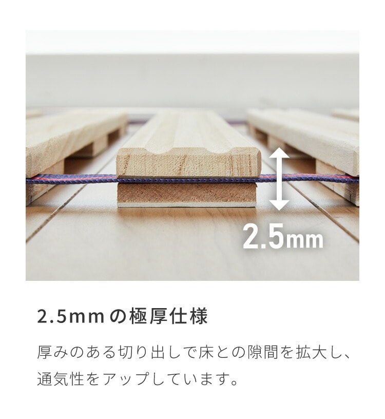 ・極厚2.5cmすのこ&リブ加工で通気性抜群