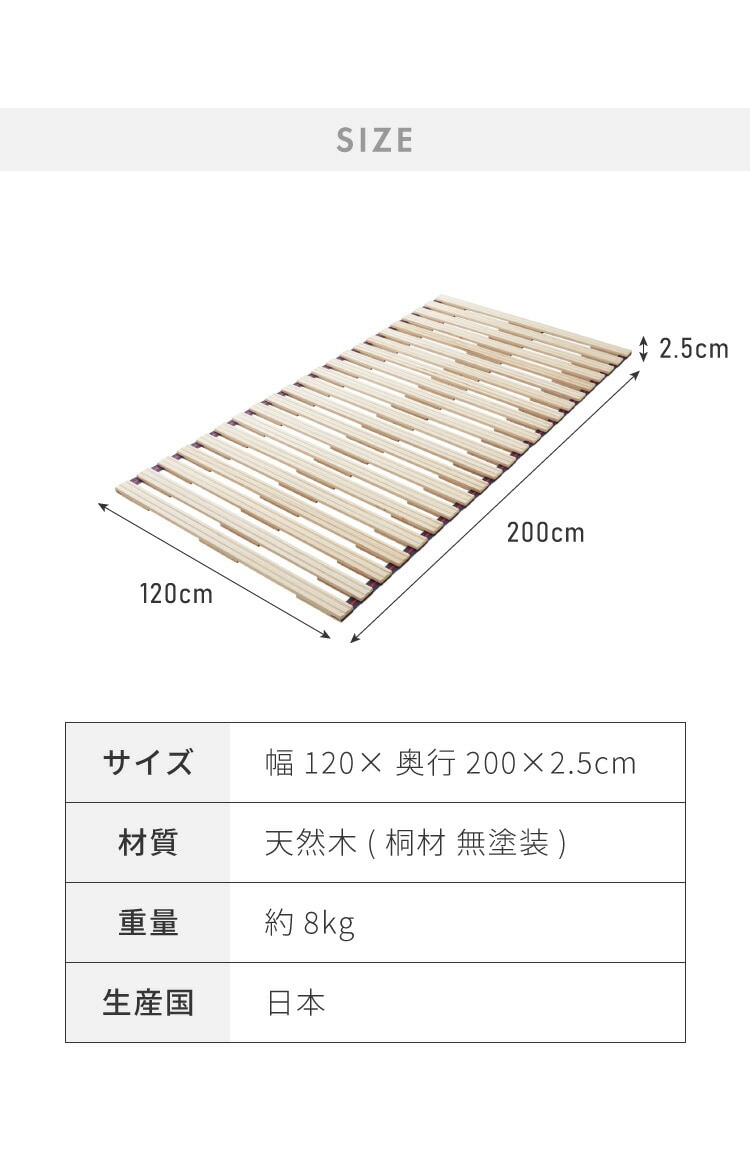 ・天然木の桐材を使用し、新潟の日本の職人が作った日本製すのこベッドです。
