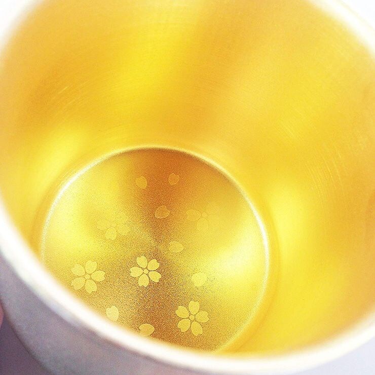 内面、外面にブラスト加工をし、尚底面にレーザー加工でさくらの模様を入れ、