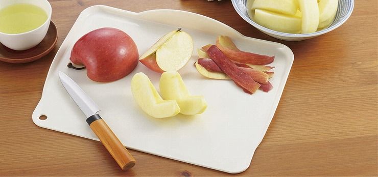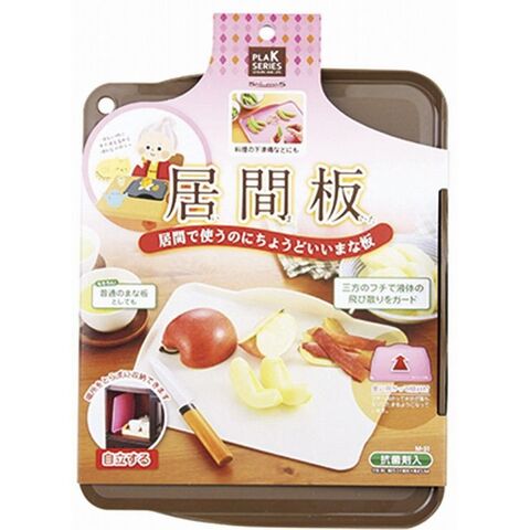 3つのフチで液体の飛び散りを防ぎ、水分は傾斜でミゾに溜まるようになっているので居間で果物を剥いたり・料理の下準備などの作業をするのにちょうどいいまな板です。自立でき省スペースでの収納も可能です。コンパクトで軽量なので持運びもラクに行えます。