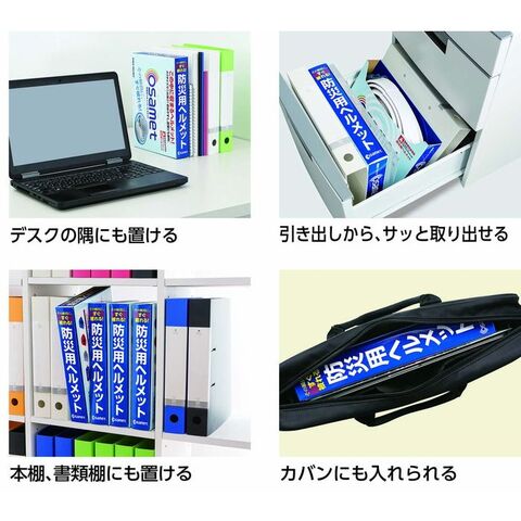 A4サイズ且つ薄さ45mmだから、場所を取らずに収納でき、コンパクトで持ち運びにもうれしいサイズです。職場や一般家庭で、万が一の備えとして、身近に常備・携帯し易いヘルメットです。国家検定合格品。厚生労働省による労働安全衛生法規格検定試験。