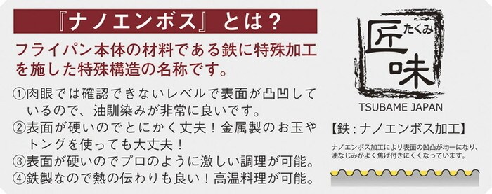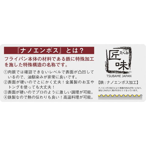 新素材「ナノエンボス」採用。耐久性が高く、長持ちするフライパン。