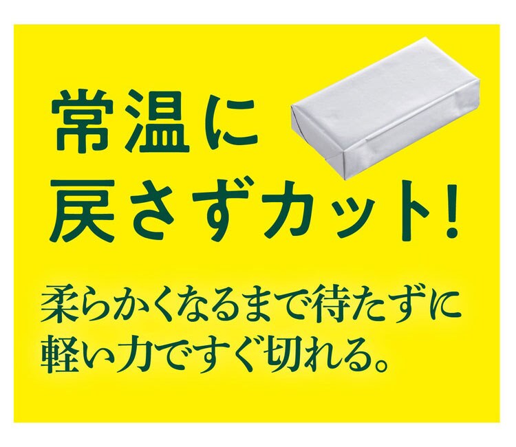 「すぐ切れるバターカットケース」では、今まで必要だった「常温へ戻す」待ち時間が不要になりました!冷たくて固いバターでもすぐカットできます。