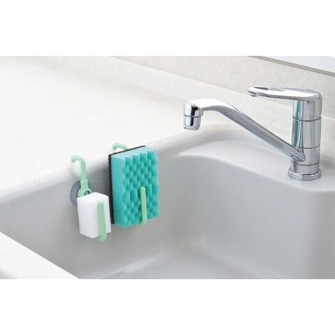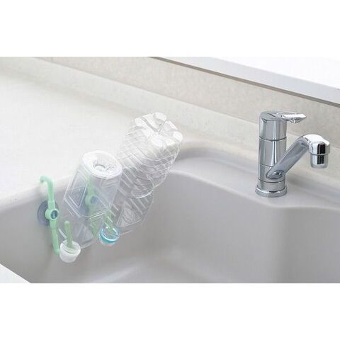●壁面にツール掛け・洗面台に歯磨きコップ・洗った保存袋干しに。