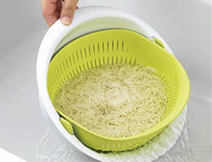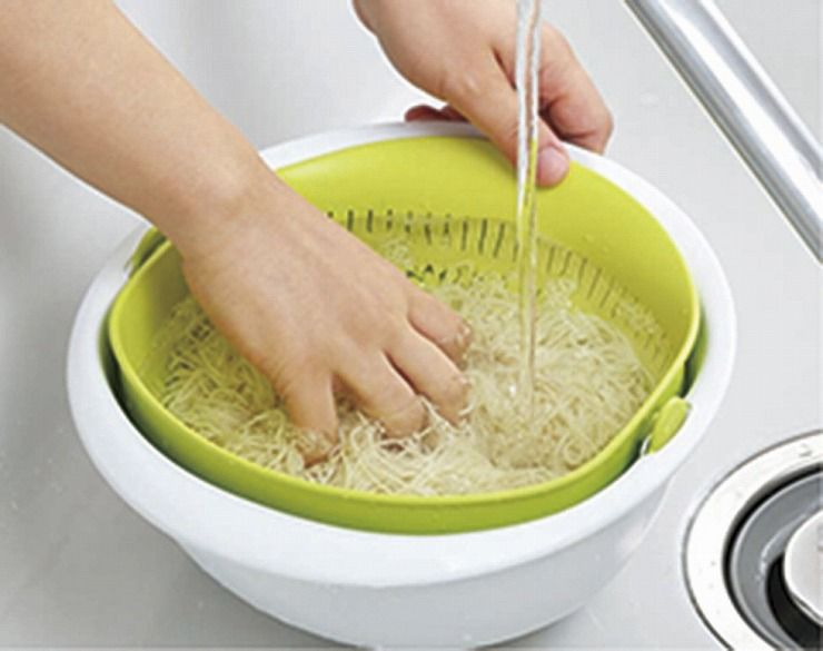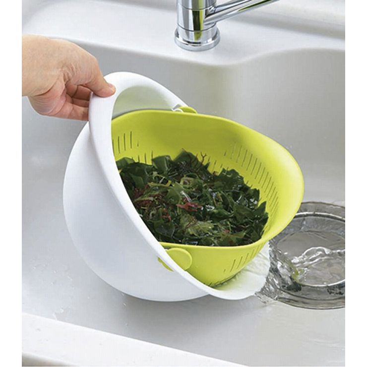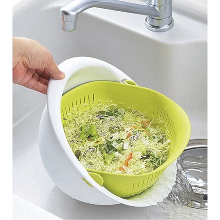 クルッと水切り!ボウルは回転・ザルはそのまま!!新発想のザル・ボウル!水切りをするのにザルを取り出す必要が無いのでお料理がとってもスピーディー!片手で傾けるだけで簡単水切り。ボウルを180度回せば、しっかり水切りもできます。