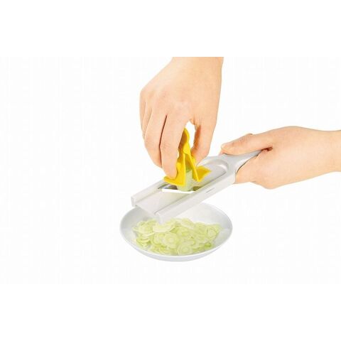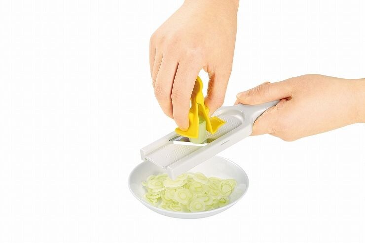 ねぎやきゅりのスライスに、指をガードして安心無駄なく調理。