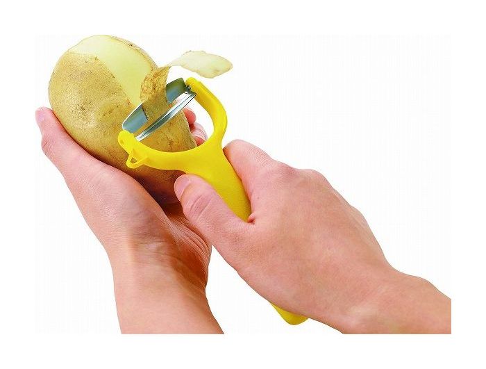 むいた野菜の皮がくっつきにくい。鋭角な刃先の斜め刃で軽い力で皮がむける。