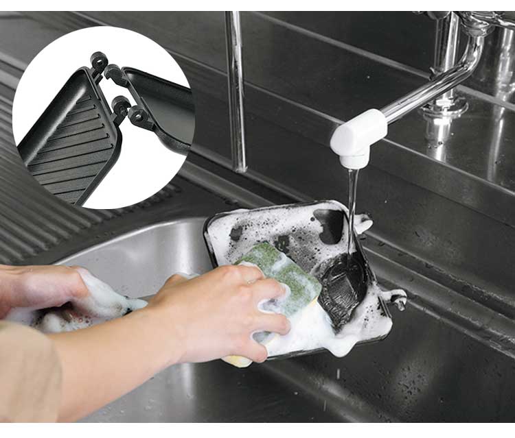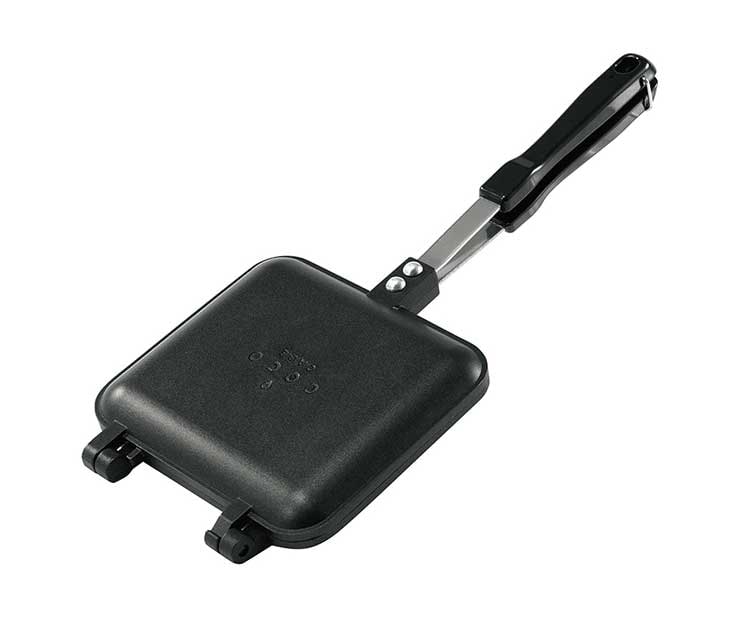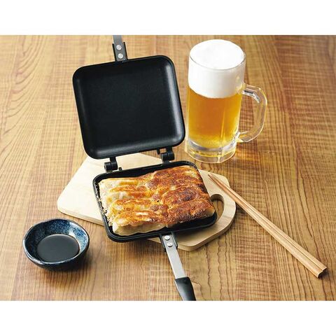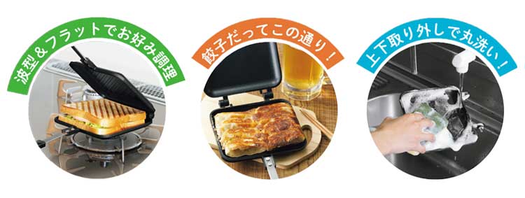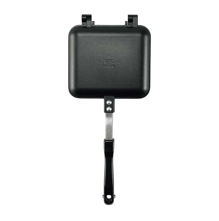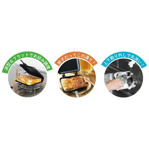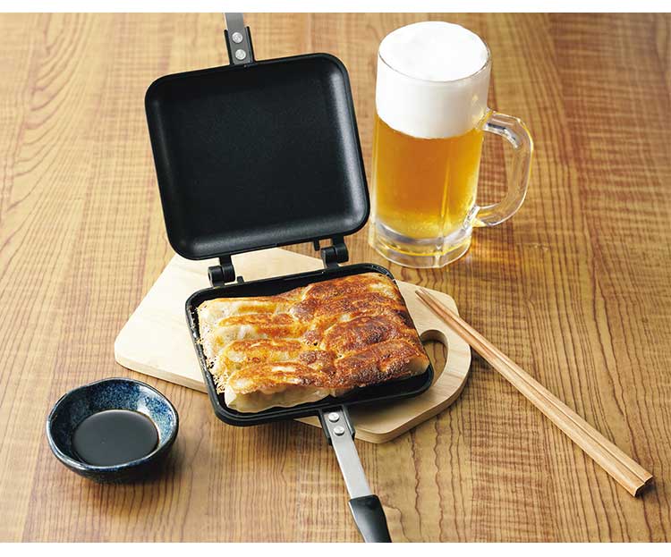 ホッとひと休み、ここがいつものカフェになる。波型&フラットでお好み調理。クルっと返すだけなので、餃子焼きにも便利。上下取り外してミニフライパンとしても使える。上下取り外せば丸洗いしやすい。
