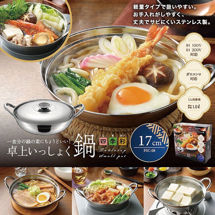 カクセー FSC-08 四季彩 -しきさい-IH対応 いっしょく鍋 17cm 一食分 鍋 ちょうどいい 軽量タイプ【送料無料】