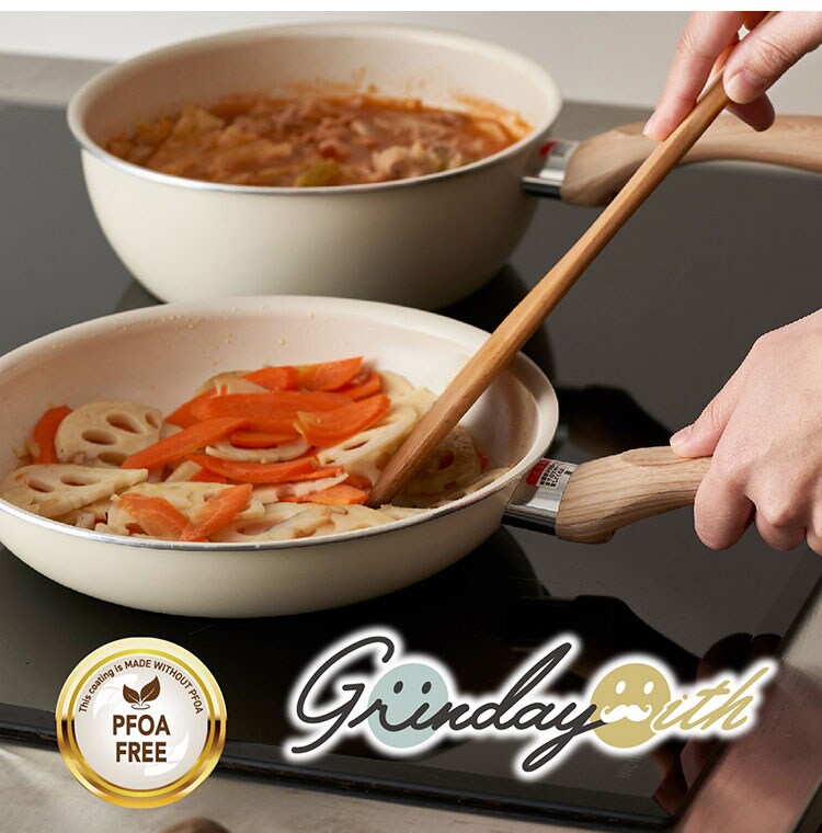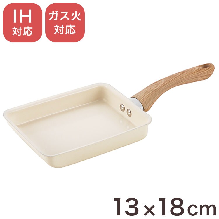 グリンデイウィズ セラミックフライパン 玉子焼き器 フッ素不使用 PFOAフリー IH対応 ガス ガス火 オール熱源 木柄 セラミックコーティング エッグパン ホワイト アイボリー シンプル かわいい【送料無料】