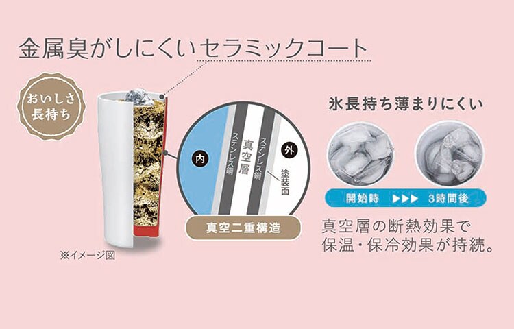 セラミックコートだから、ステンレス特有の口当たりや金属臭を軽減。