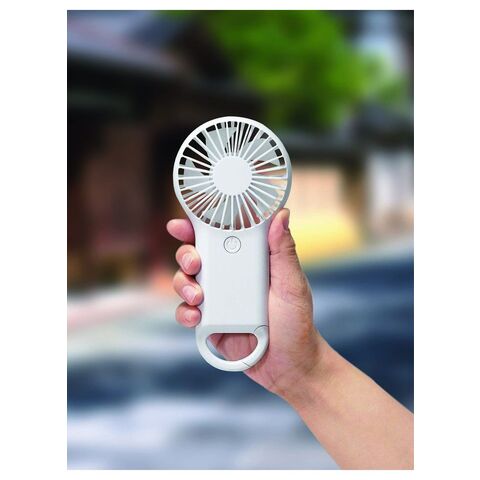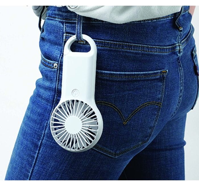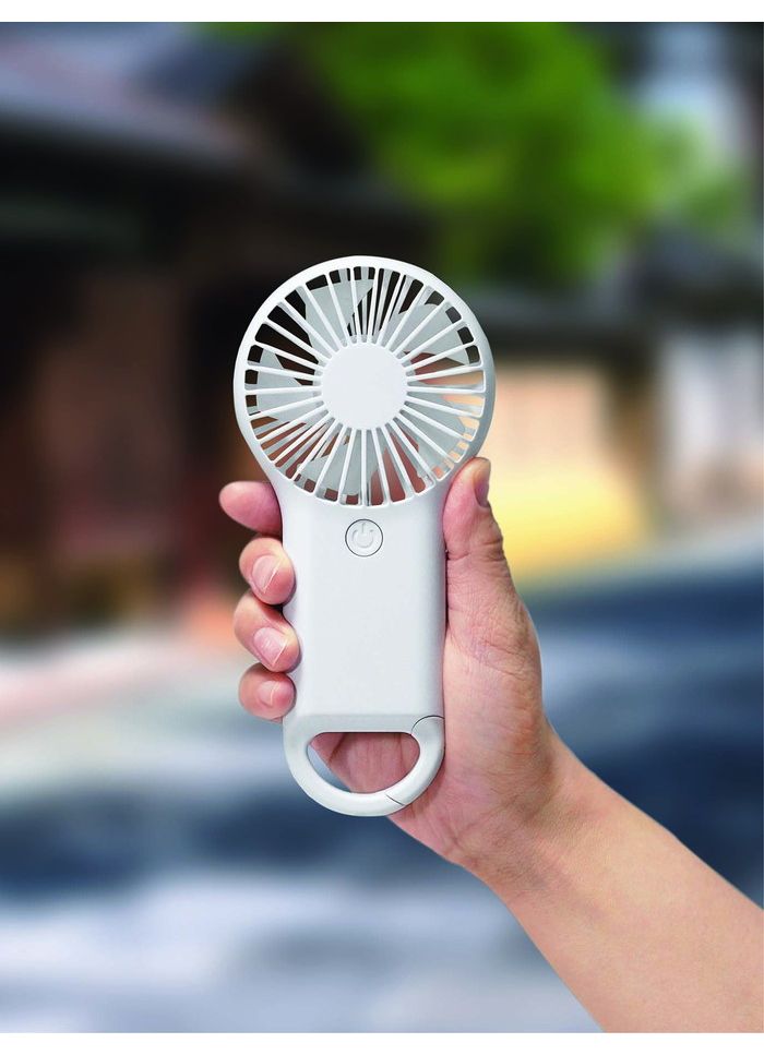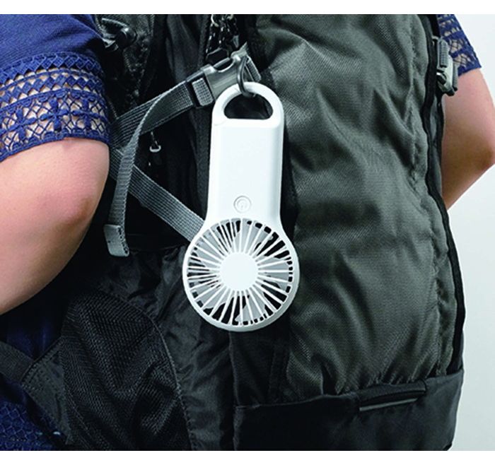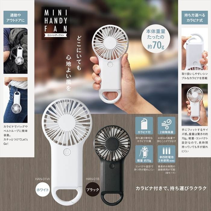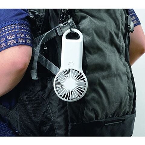 どこにいても、心地よい風を。取り扱いしやすいシンプルなカラビナを搭載。カラビナでバッグやベルトループに簡単装着。カチッとつけてLet's Go!