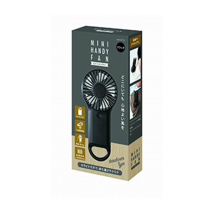 ミニハンディファン 大風量 静音 カラビナ付き ブラック 電池式 おしゃれ ハンディーファン ポータブルファン 手持ち扇風機 ミニ扇風機 軽量 携帯扇風機 スリム HAN-01B【送料無料】