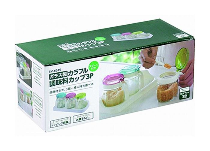 SV-6315 ガラス製カラフル調味料カップ 3P スプーン付き【送料無料】