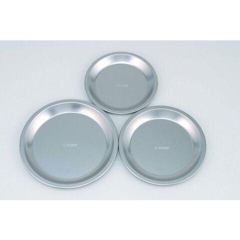 丈夫で軽量なチタン製のプレートです。何度も使えるのでとってもエコです! 3枚をスタッキング収納でき場所も取らず持ち運びに便利。
