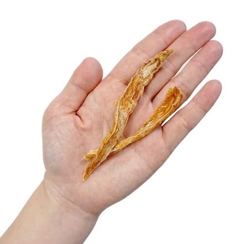 細切りにした後じっくりと乾燥させた、程よい硬さのおやつです。