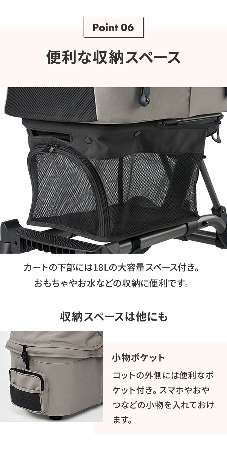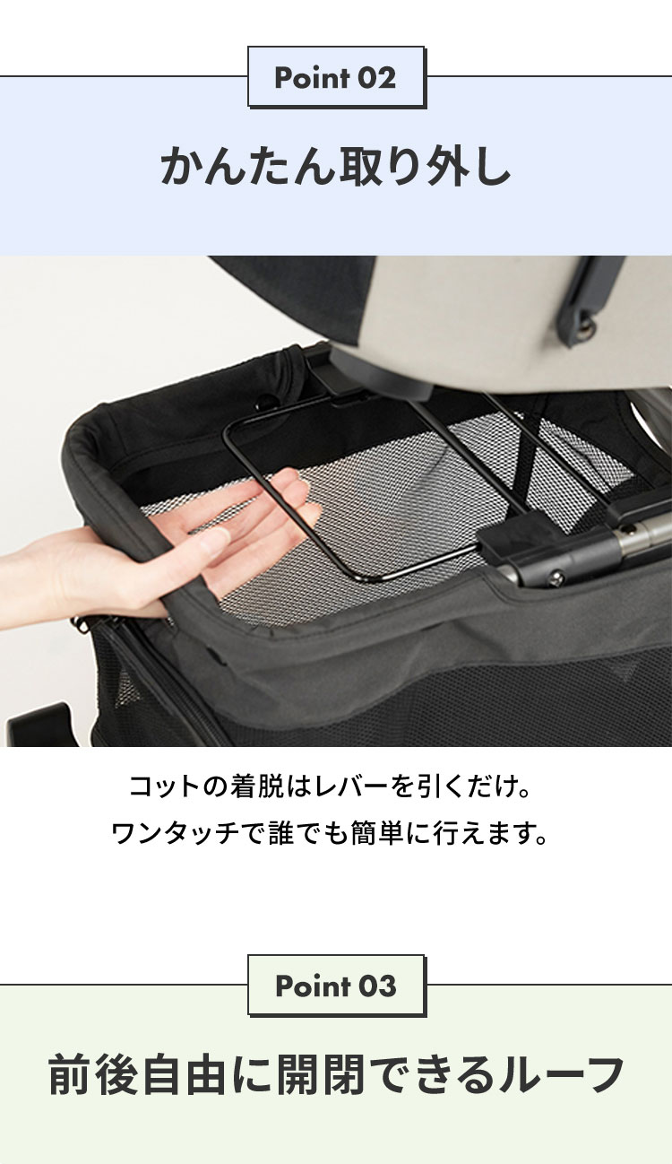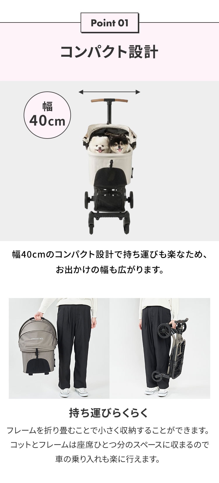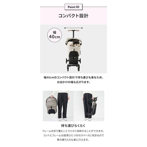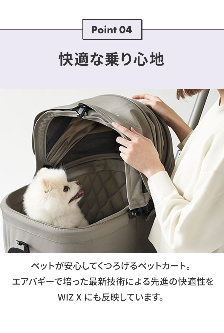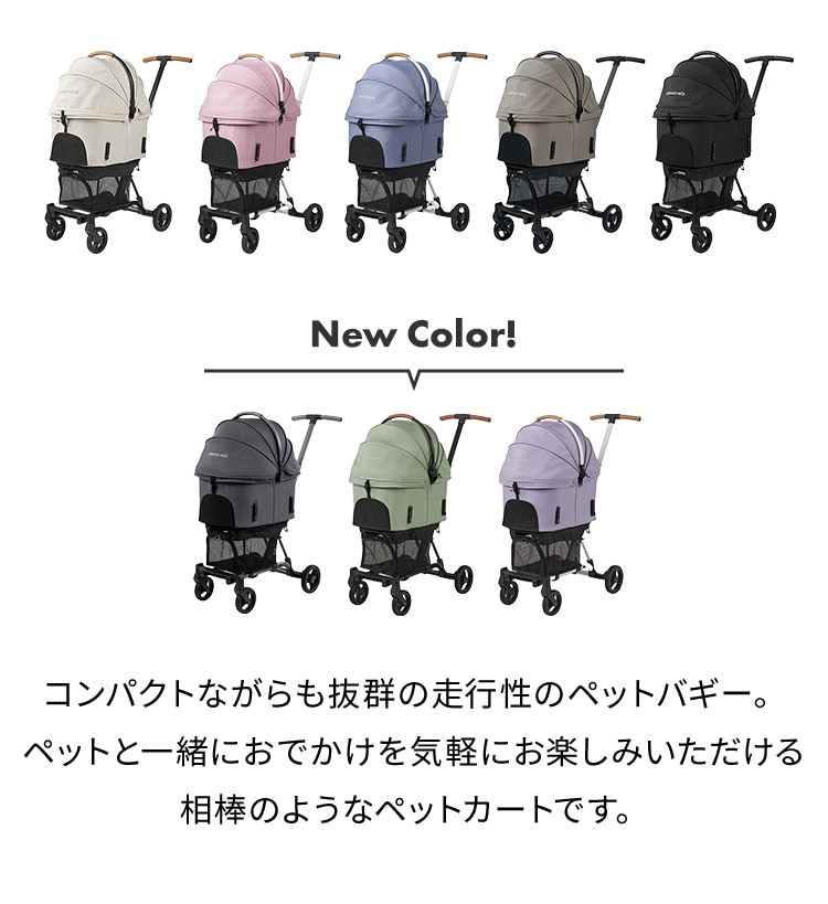 いつものお出かけを、今よりもっと気軽にお楽しみいただける、頼れる相棒のようなペットカートです。