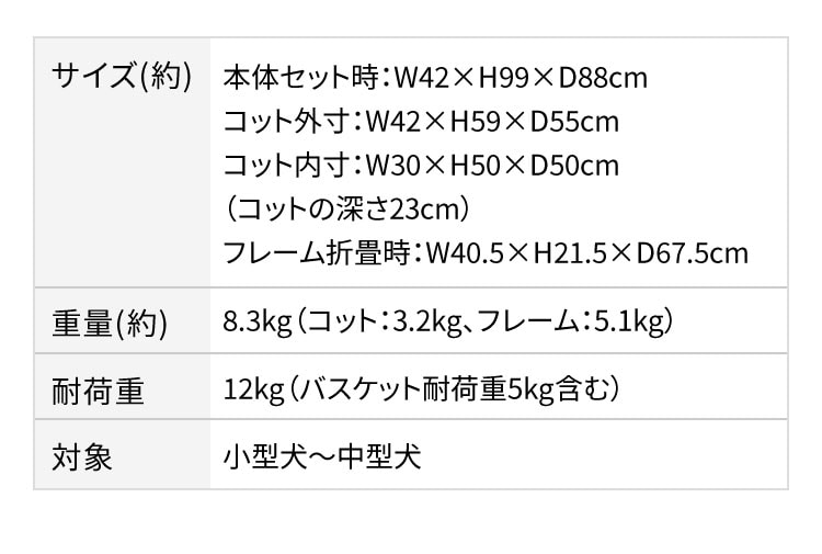 コット内寸:W30×H50×D50cm(コットの深さ23cm)
