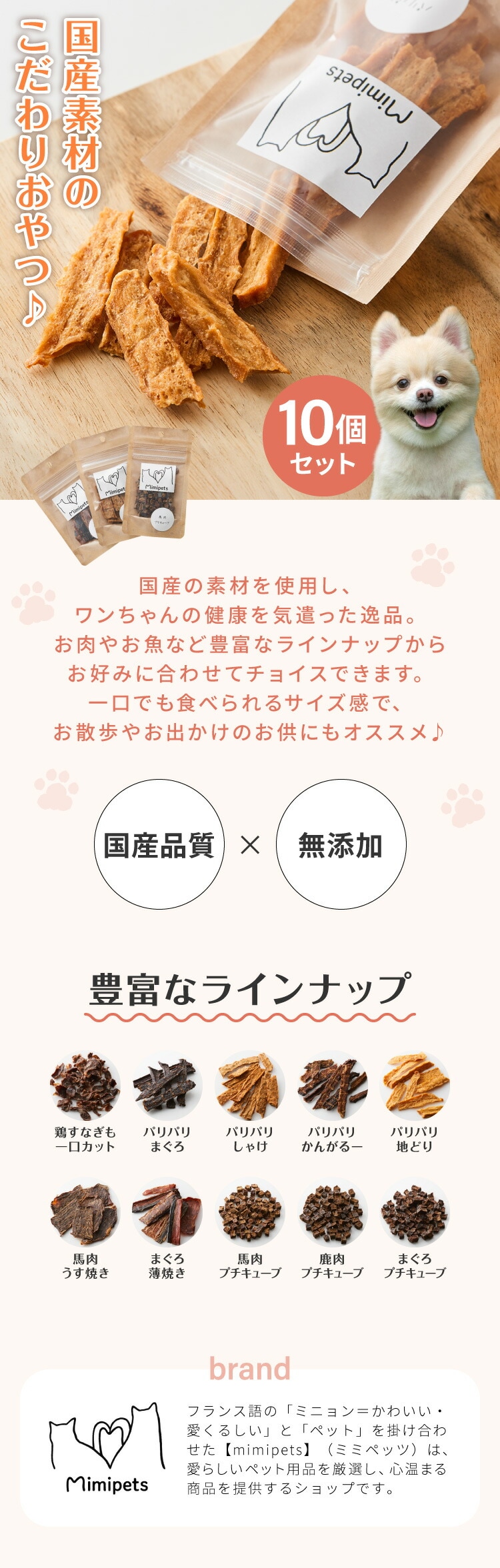 【10個セット】 犬用 おやつ 食べ切りサイズ 無添加 お肉 お魚 日本製 国産 犬用おやつ ご飯 ご褒美 トリーツ トッピング 素材系 肉 魚 mimipets オリジナル 犬 小型犬 室内犬【ポイント10倍】 【送料無料】