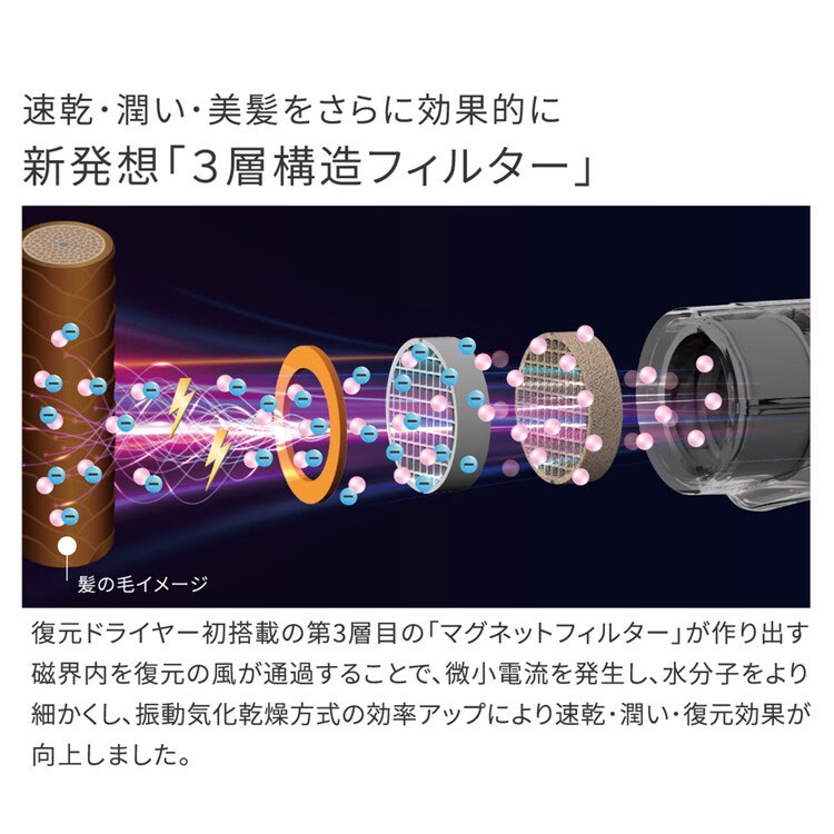 適温なのに速乾という復元ドライヤーがさらに進化。フィルター設計の変更によって照射力がUP。