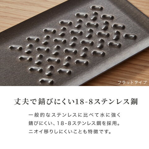 燕三条発!刃を使わないおろし金はすりおろしのときに手を切らず安心、安全。にんにくなど小さな食材も最後まで擦り切れる!洗う時のスポンジも引っかからずお手入れ簡単♪